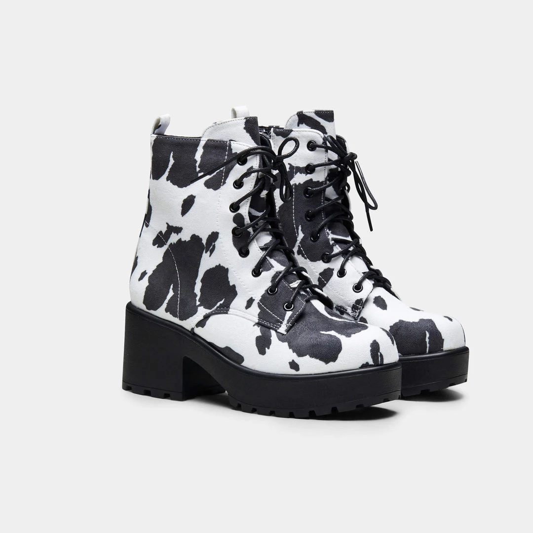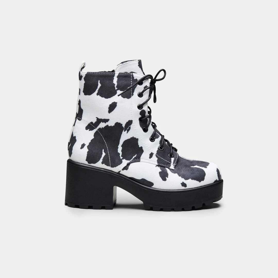 Mooooove over the snake skin, cow print is here to show you ALL animal print is in. This classic chunky boot is the perfect way to dip your toe into this trend