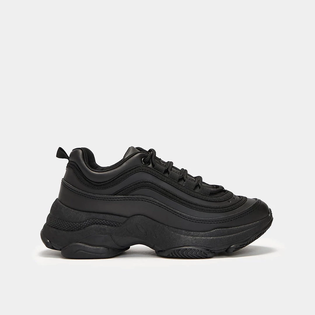 A real wardrobe essential – these all black chunky trainers are super versatile and effortless. Style these with anything from black tracksuits to little summer dresses,Β we know these lace up faux leather trainers will look amazing on you, whether you’re at the park