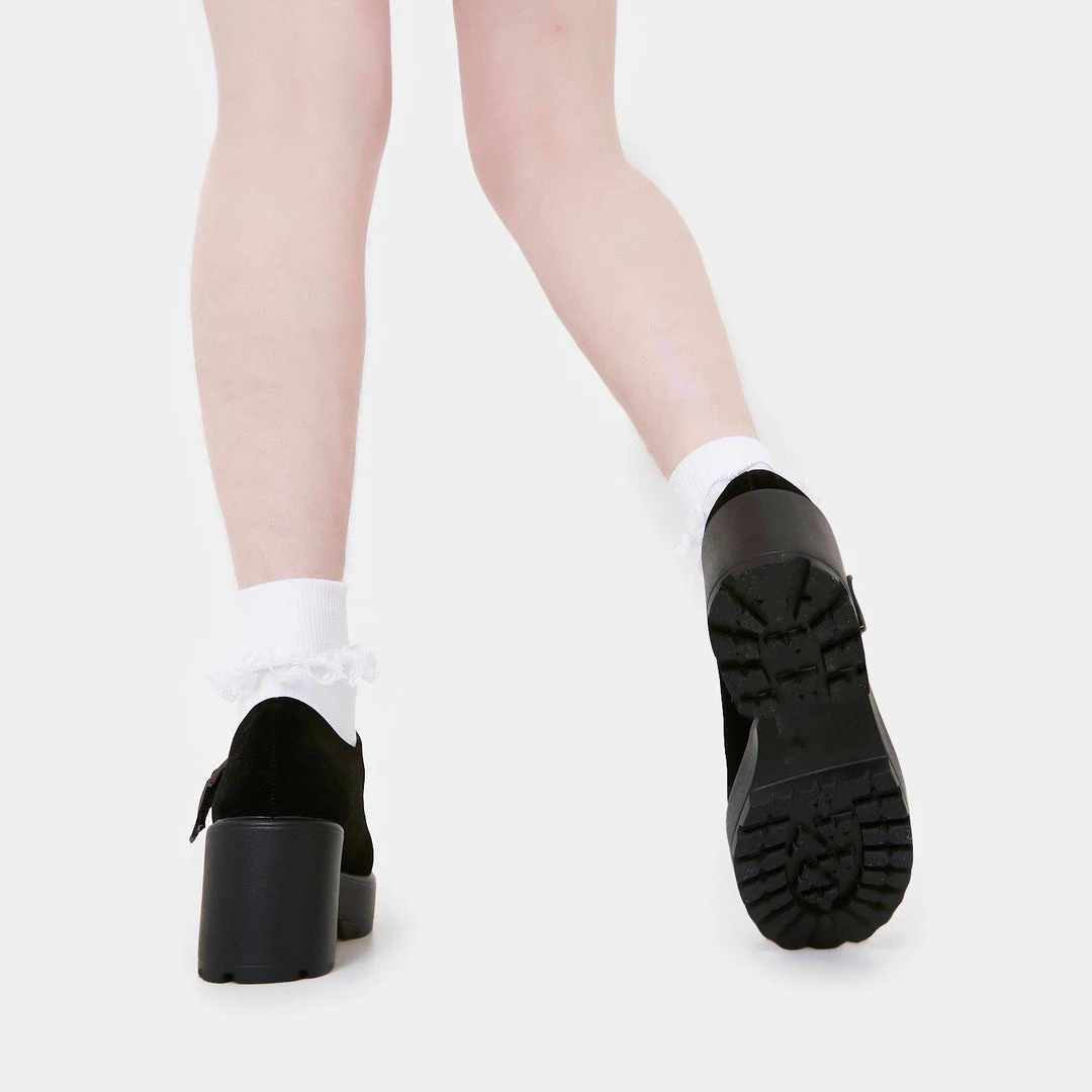 Hey there, nostalgia! Mary Janes are in, and we have the most classic of classic, Casual or Lolita look, we’ve got you covered, available here in a suede material and on a chunky platform.