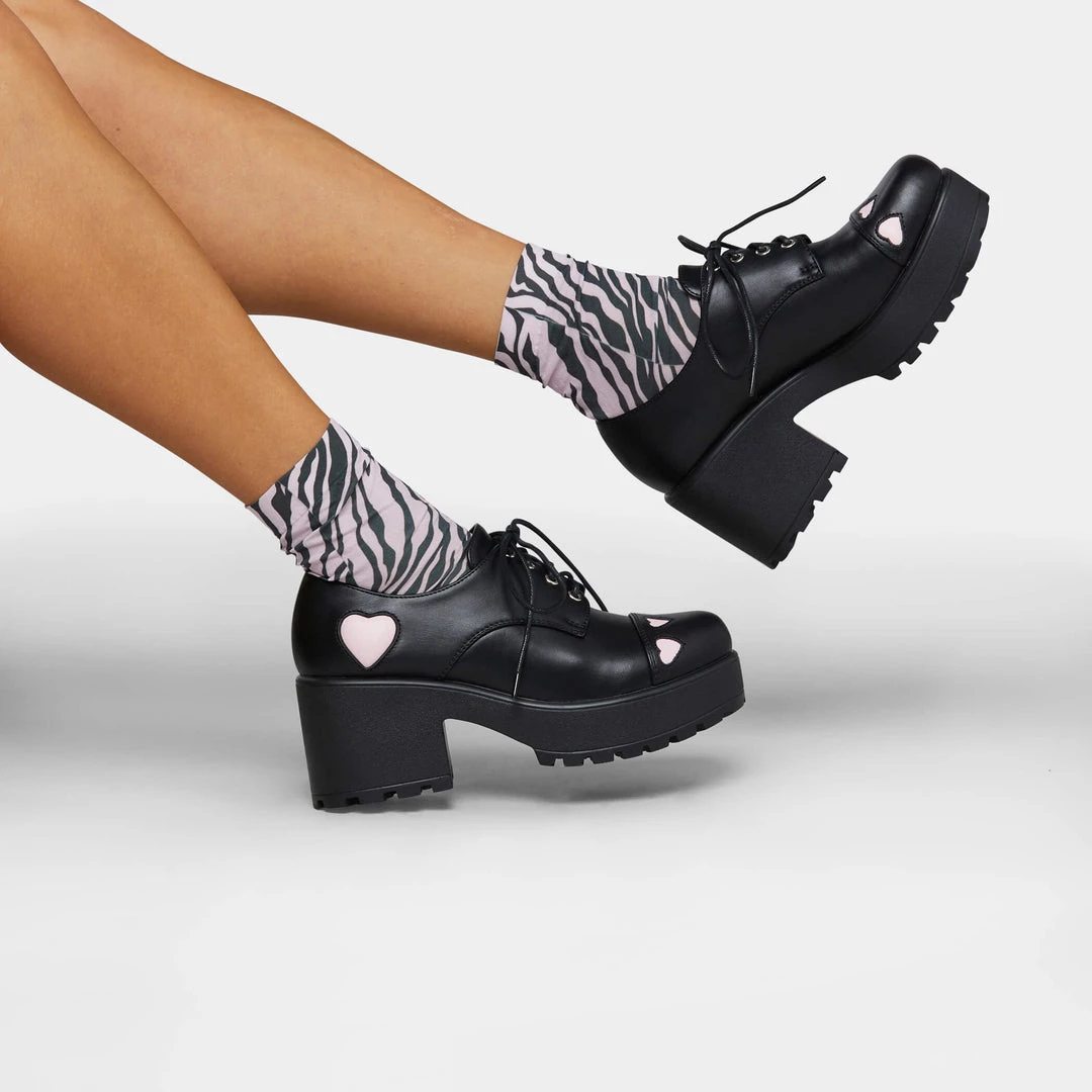 Show off your softer side with these super cute shoes! In a Mary Jane design with pink heart detailing, we now wear our heart on our shoes not our sleeves!