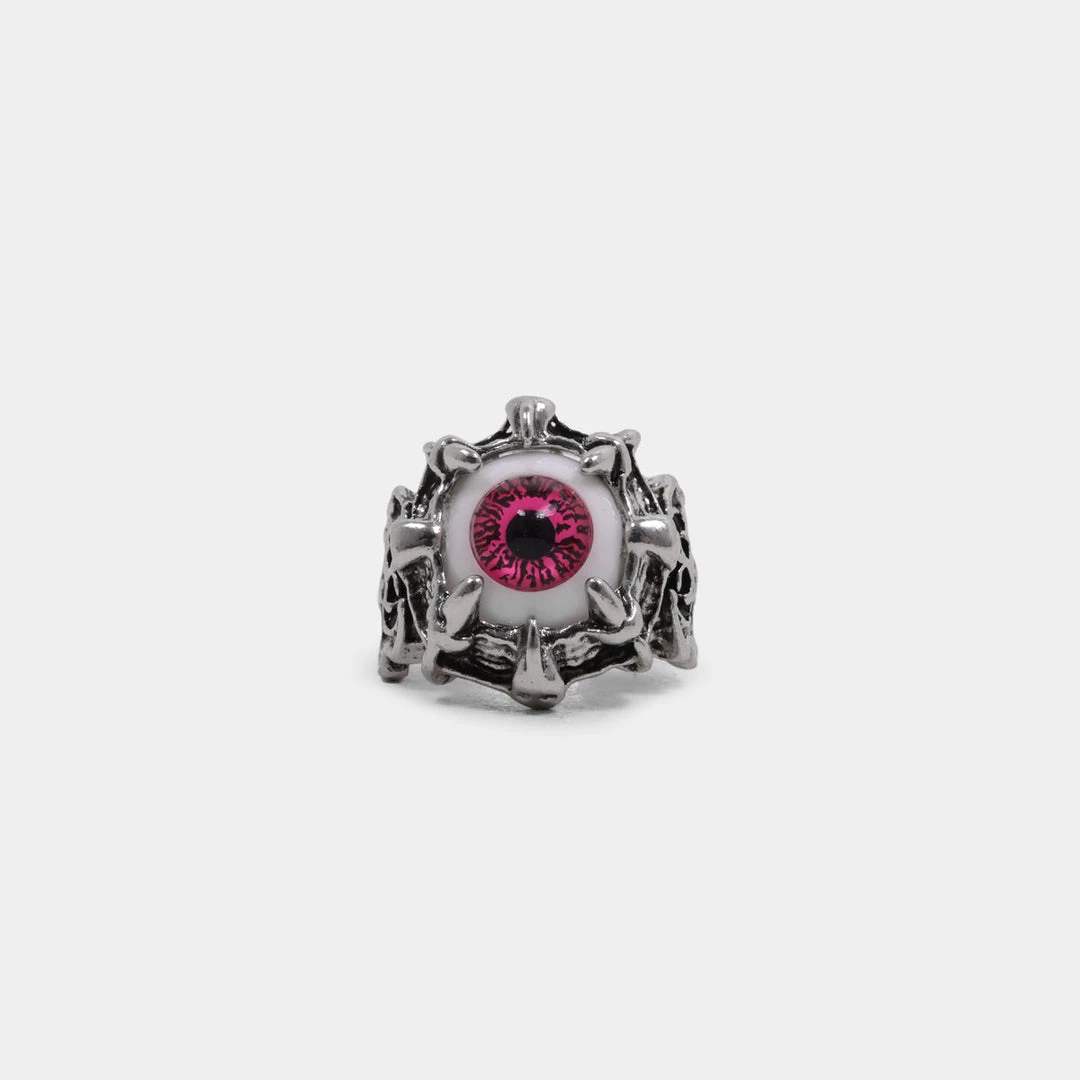 Look into my eyes…uplift any all-black ‘fit when you wear this spooky goth ring featuring a silver band with a grungey metal effect and claws. This ultra-realistic eyeball has a pink iris for a pop of colour and is guaranteed to make a statement.