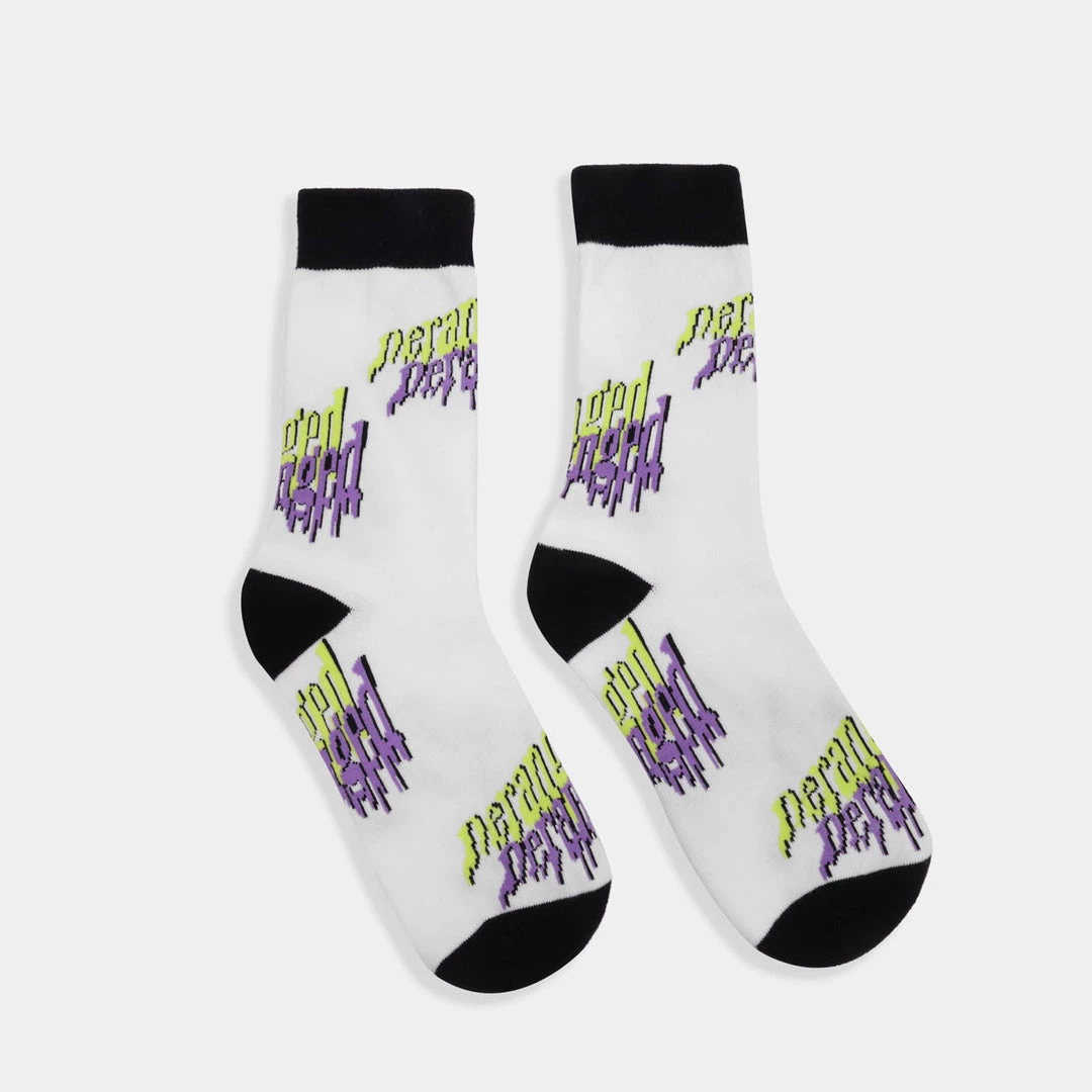 So what If I’m crazy? the best people are. These white socks feature deranged logo, soft and stretchy material.