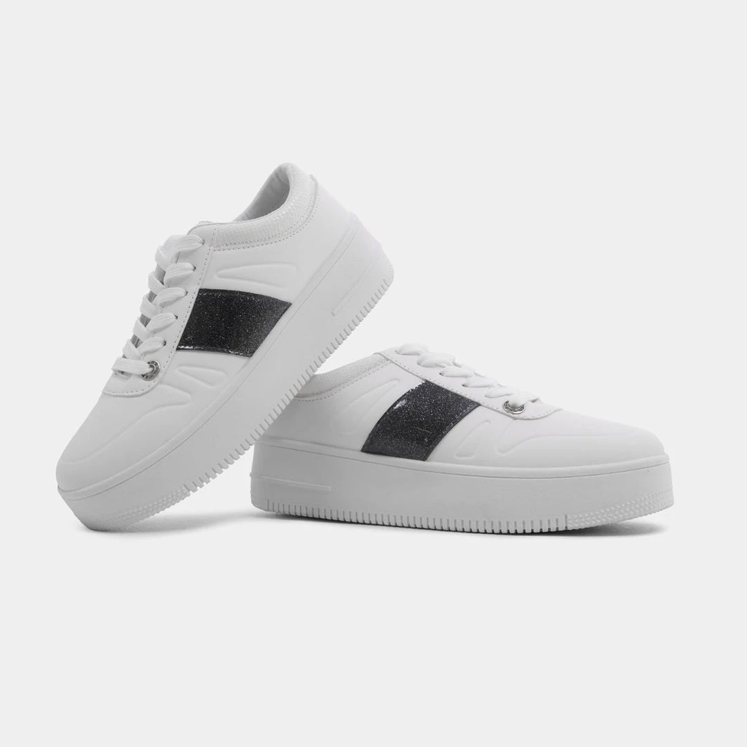 Eternia trainers are bringing us back to basics. These classic and simple sneakers features lifted midsole/outsole, made from sustainable materials and platform sole. The grey strips on the side, elevates the classic tennis shoes.