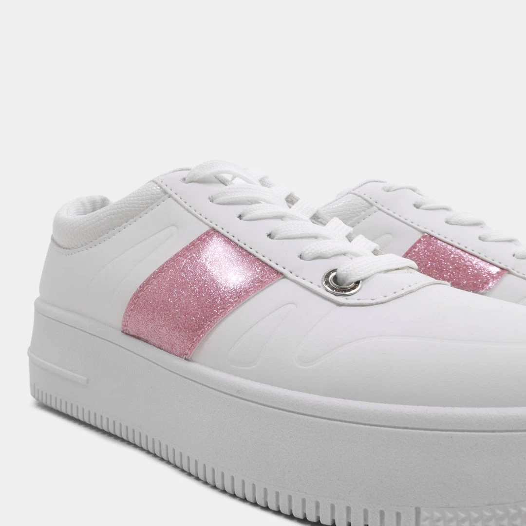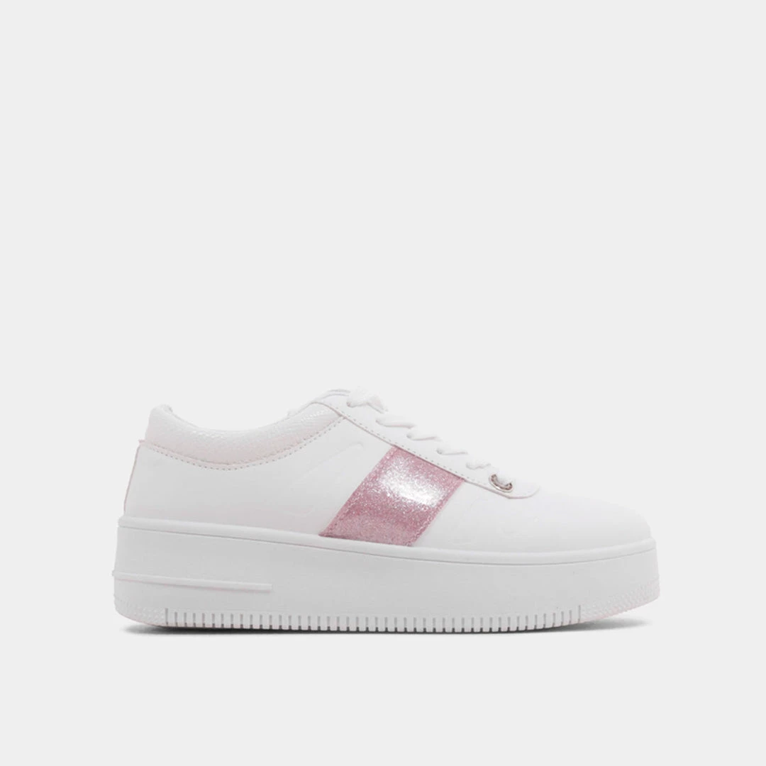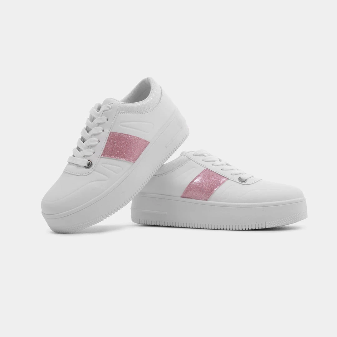 Eternia trainers are bringing us back to basics. These classic and simple sneakers features lifted midsole/outsole, made from sustainable materials and platform sole. The pink strips on the side, elevates the classic tennis shoes.