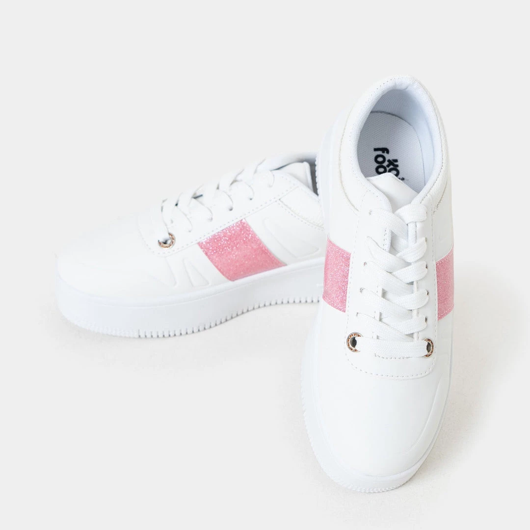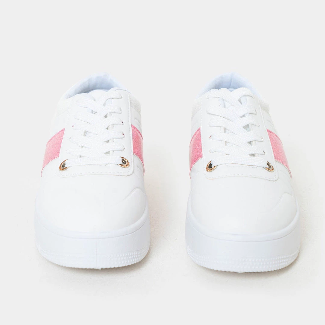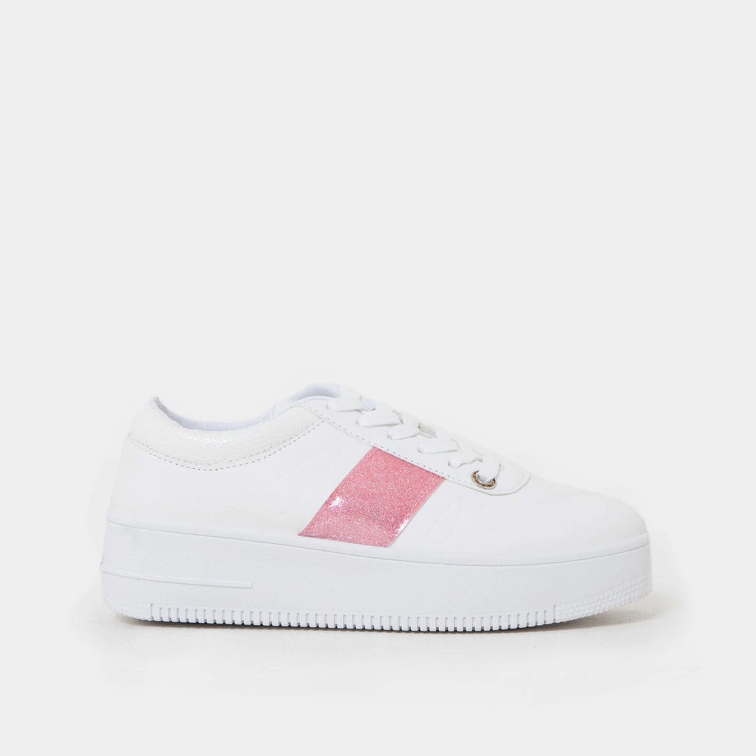 Eternia trainers are bringing us back to basics. These classic and simple sneakers features lifted midsole/outsole, made from sustainable materials and platform sole. The pink strips on the side, elevates the classic tennis shoes.