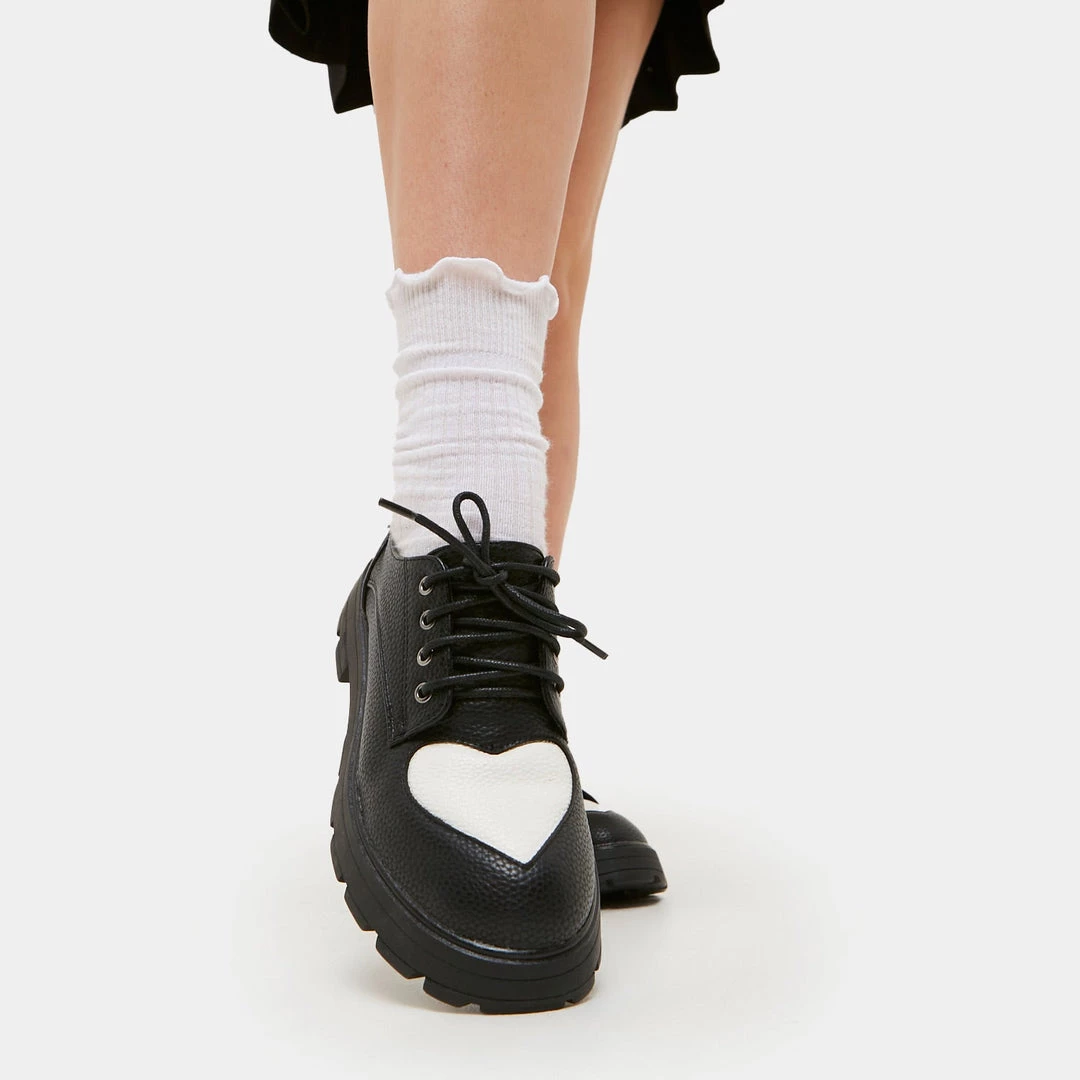 Hathor, the sky goddess is here to slay. Show some love to the queen with Hathor White Heart Shoes. These shoes feature texture vegan leather with a majestic white heart in the front and a lace up.Β
