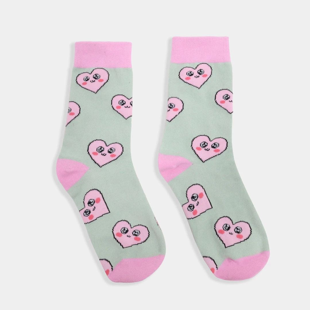 DETAILSBe bright, be happy, be kawaii. These cute socks feature pink heart prints overall, soft and stretchy material.