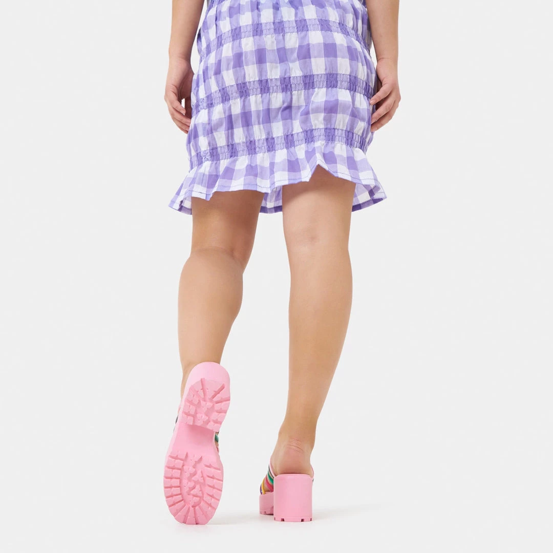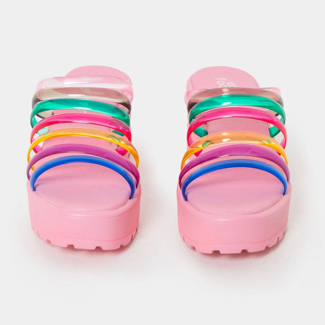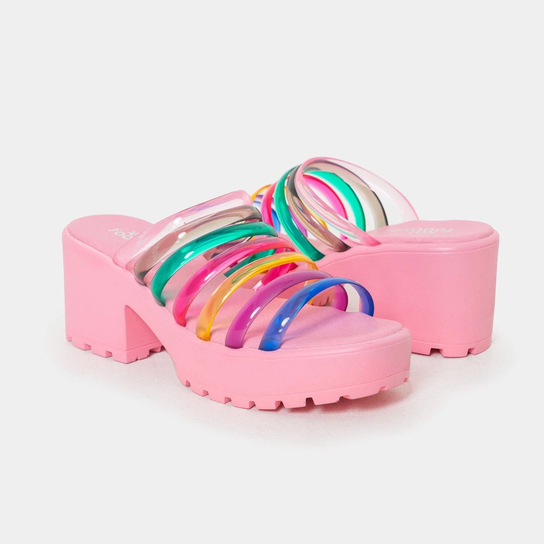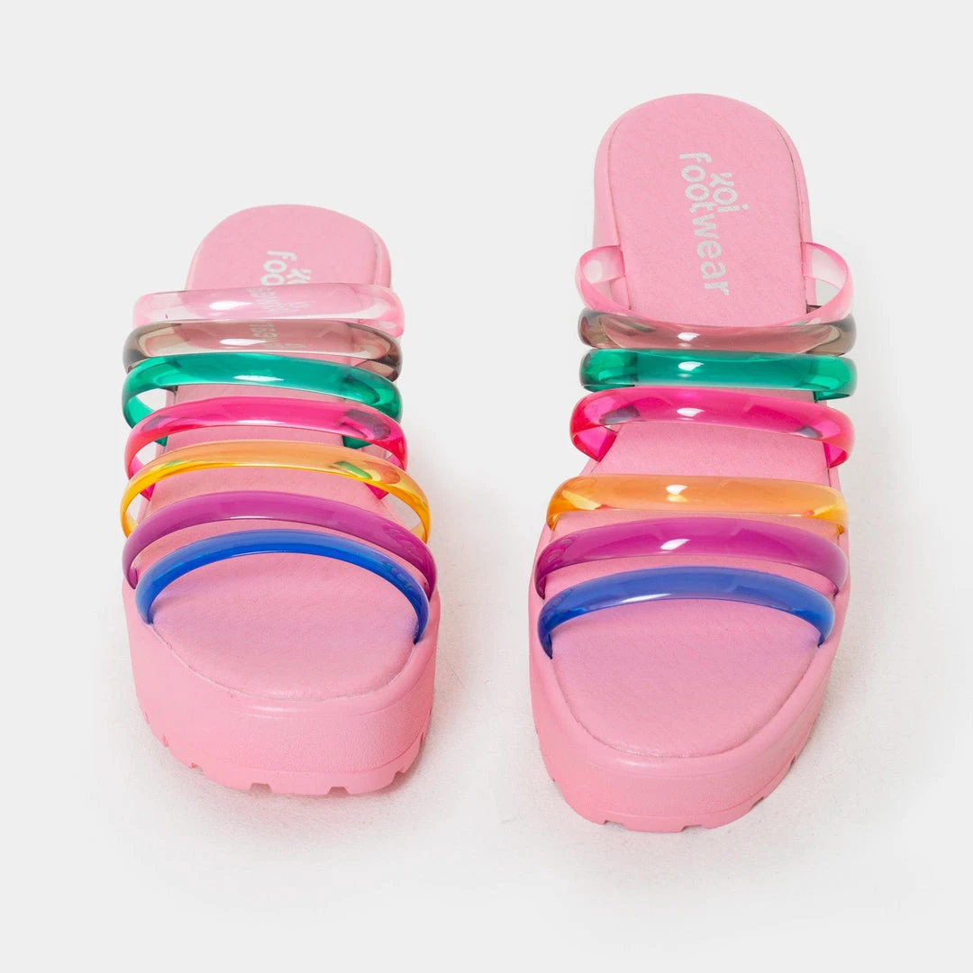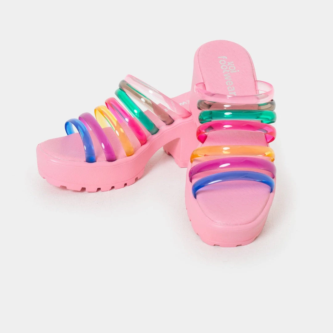 You’re the sweetest one around…wear the colours of the rainbow on your vegan shoes this summer baby – green, yellow, purple and blue jelly straps. These multi- colored Koi Footwear sandals have sweet pink soles with a little heel so they can be dressed up and down – and of course embody the cutest Y2K vibes. Strappy, chunky sandals 4ever.