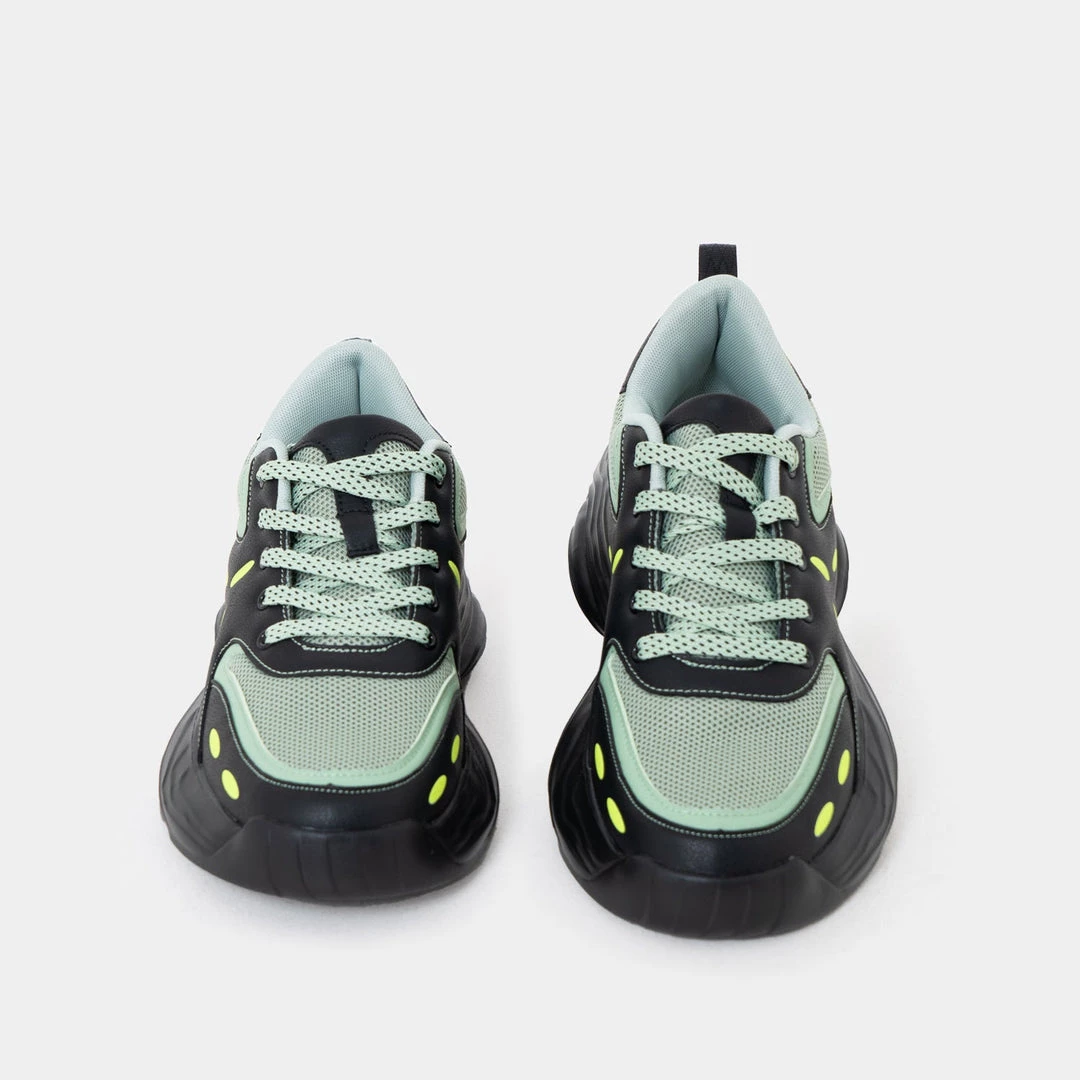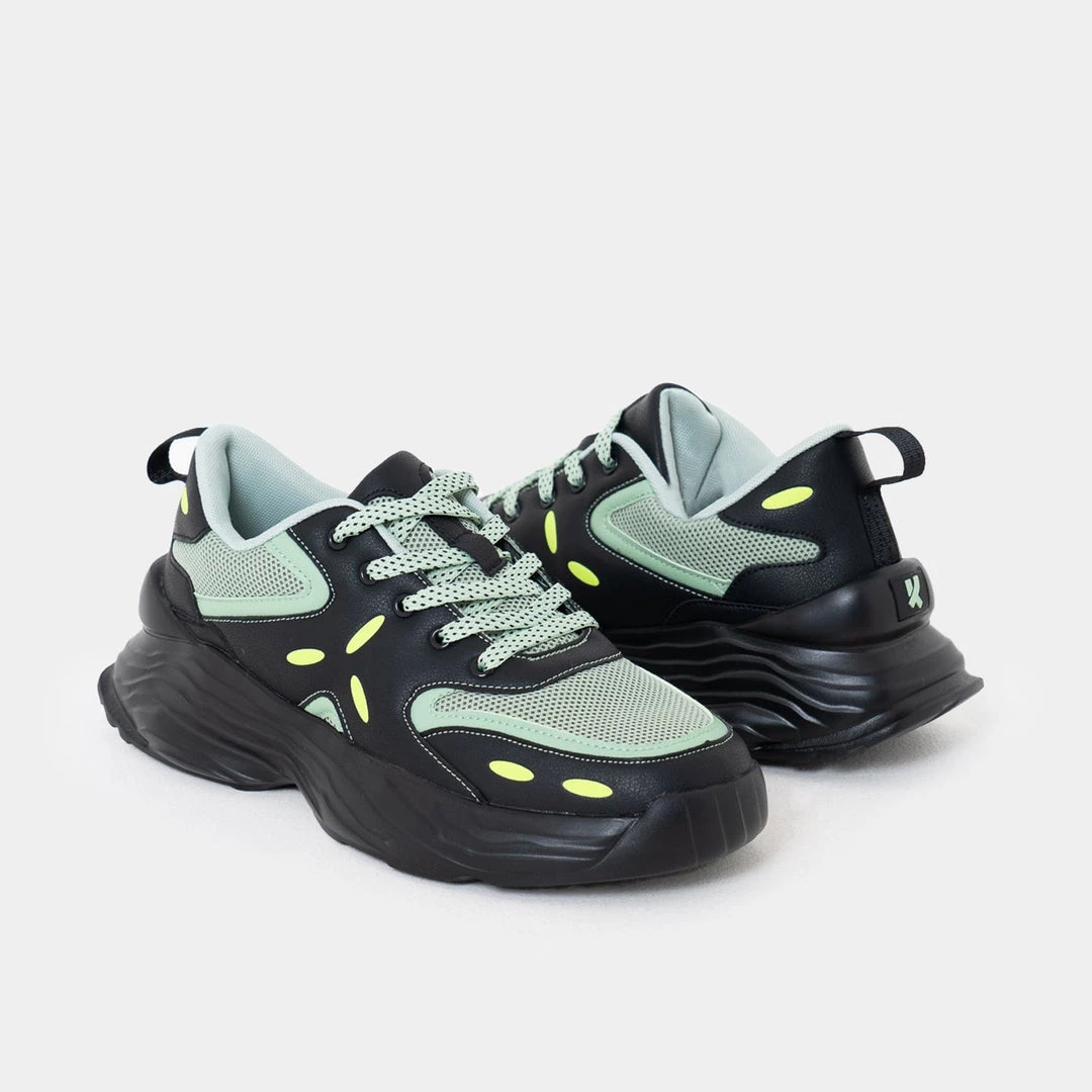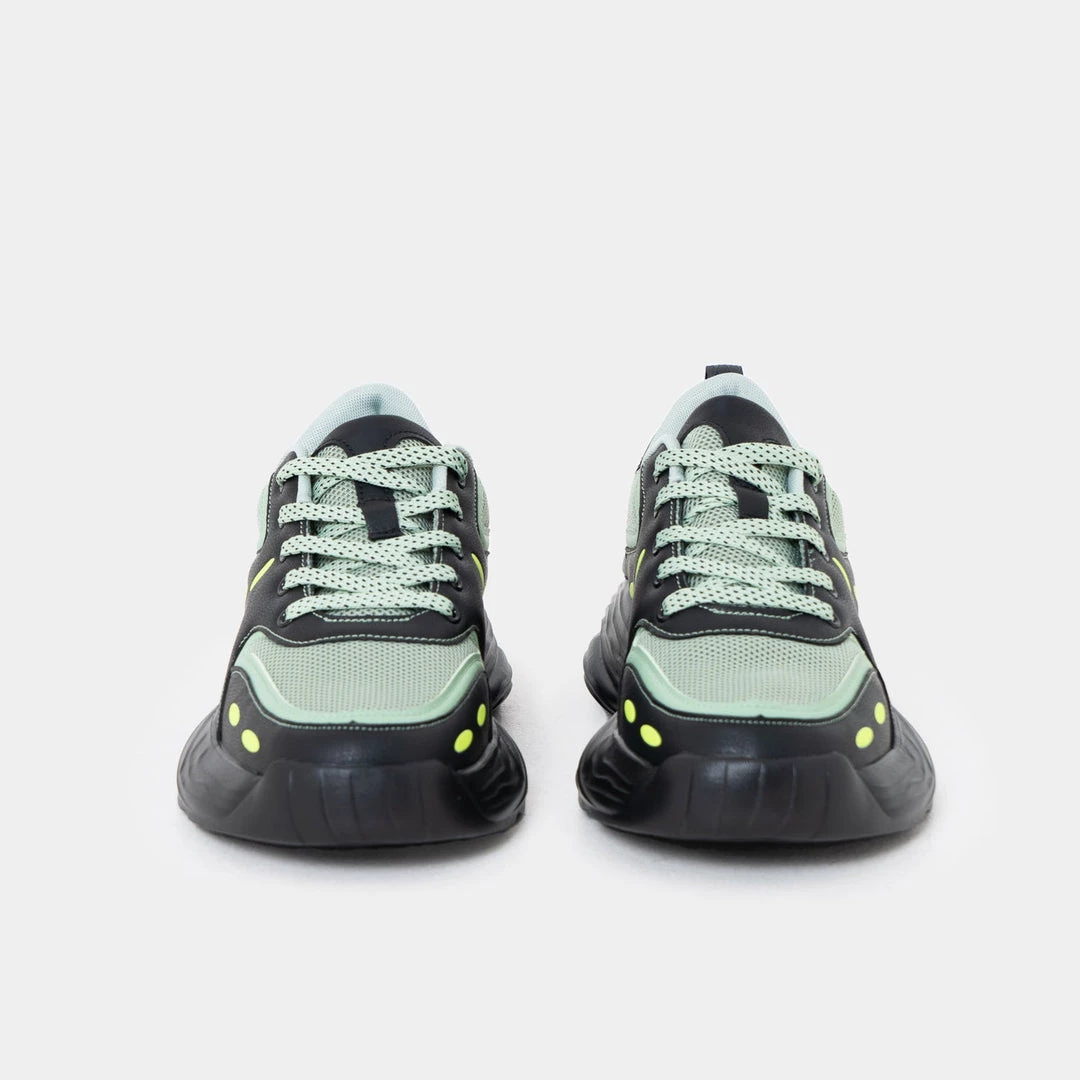 Men’s trainers are here to kill it this season. The Acre Trainers come with the comfiest insole, which makes them perfect for the gym or a night out. The trainers have green mesh detailing and yellow patterns all over, dotted lace- up and rubber sole.
