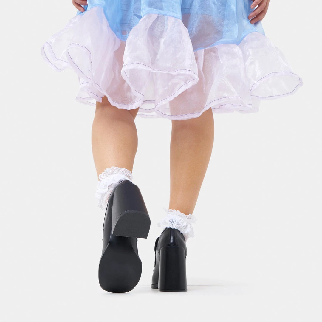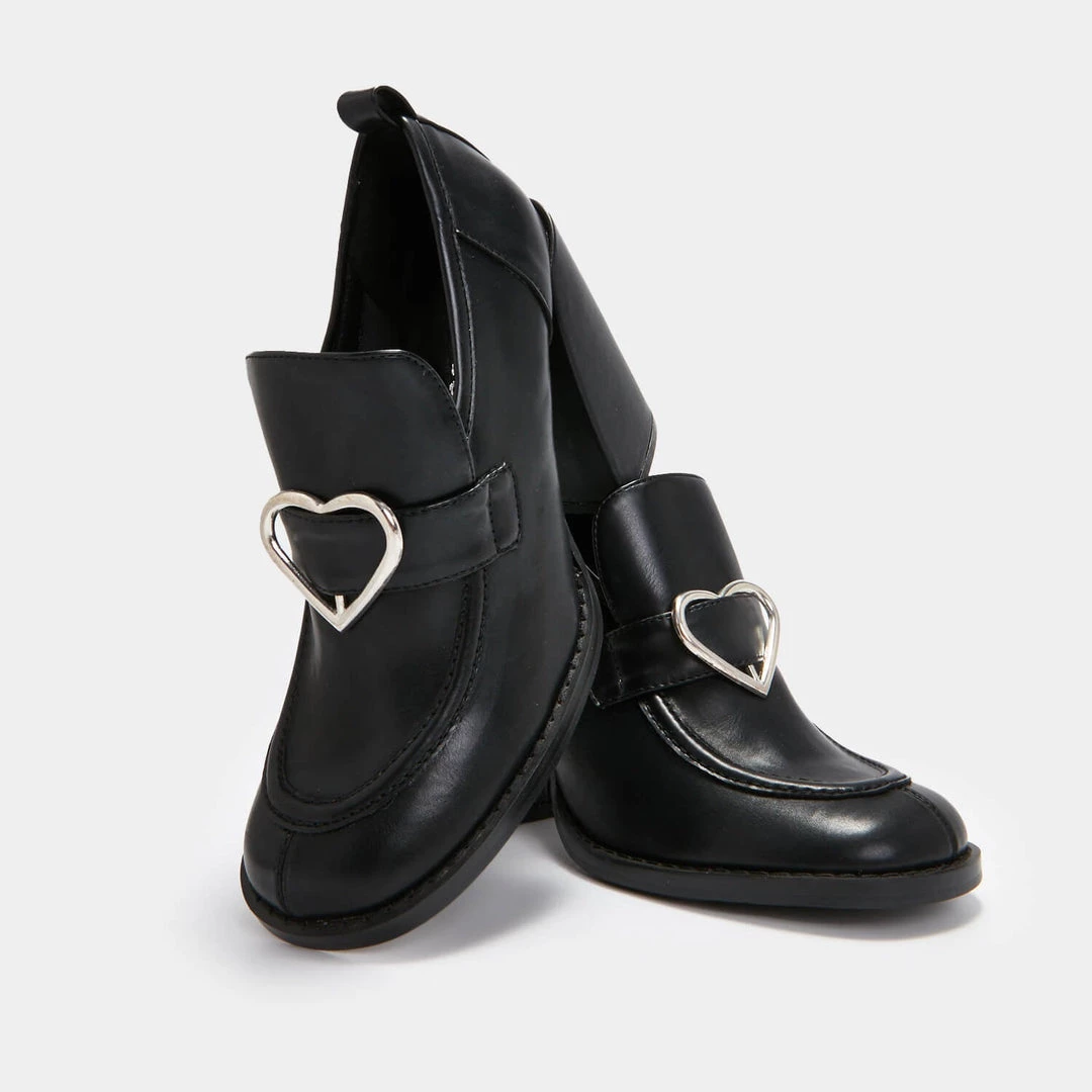 So excited to present you with our best seller, Delights Sugar Mules in classic black color. These mules feature a front heart buckle hardware, slip on fit and chunky heels. Elevate your afternoon with these delights.