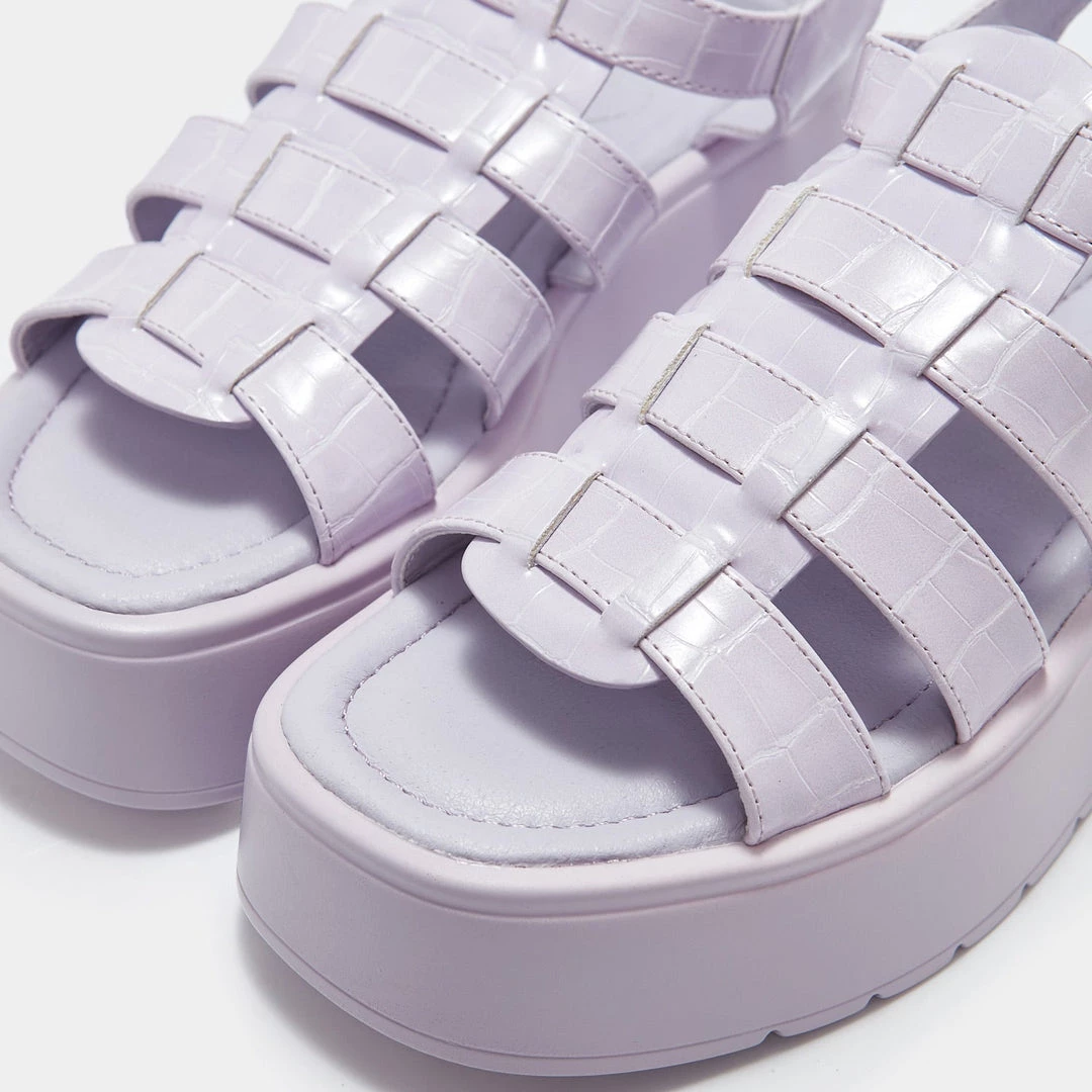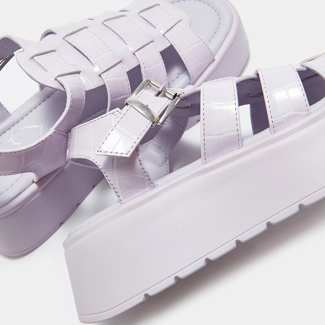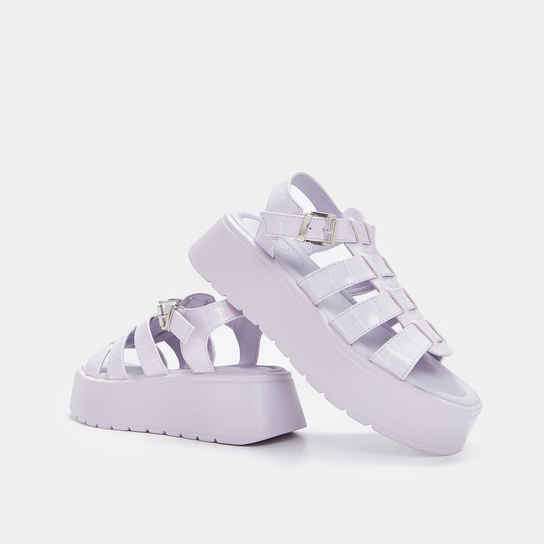 Cute summer vibes for this after prom! Koi has brought you some vegan crocodile leather platform sandals in the perfect shade of lilac. There’s no way to go wrong with chunky shoes, in any situation. Dance the night away bby, these purple sandals have a silver buckle detail, too.