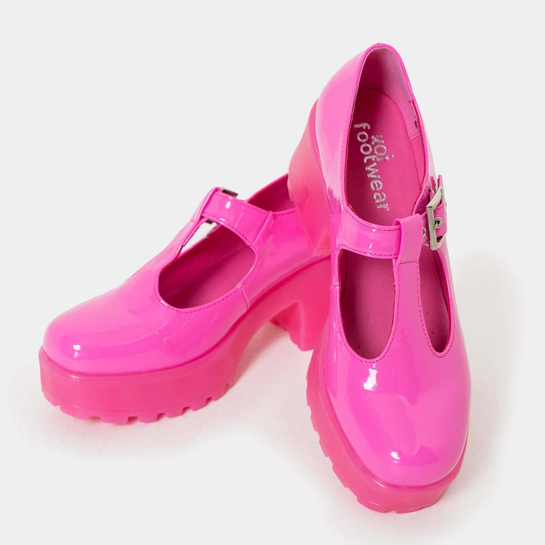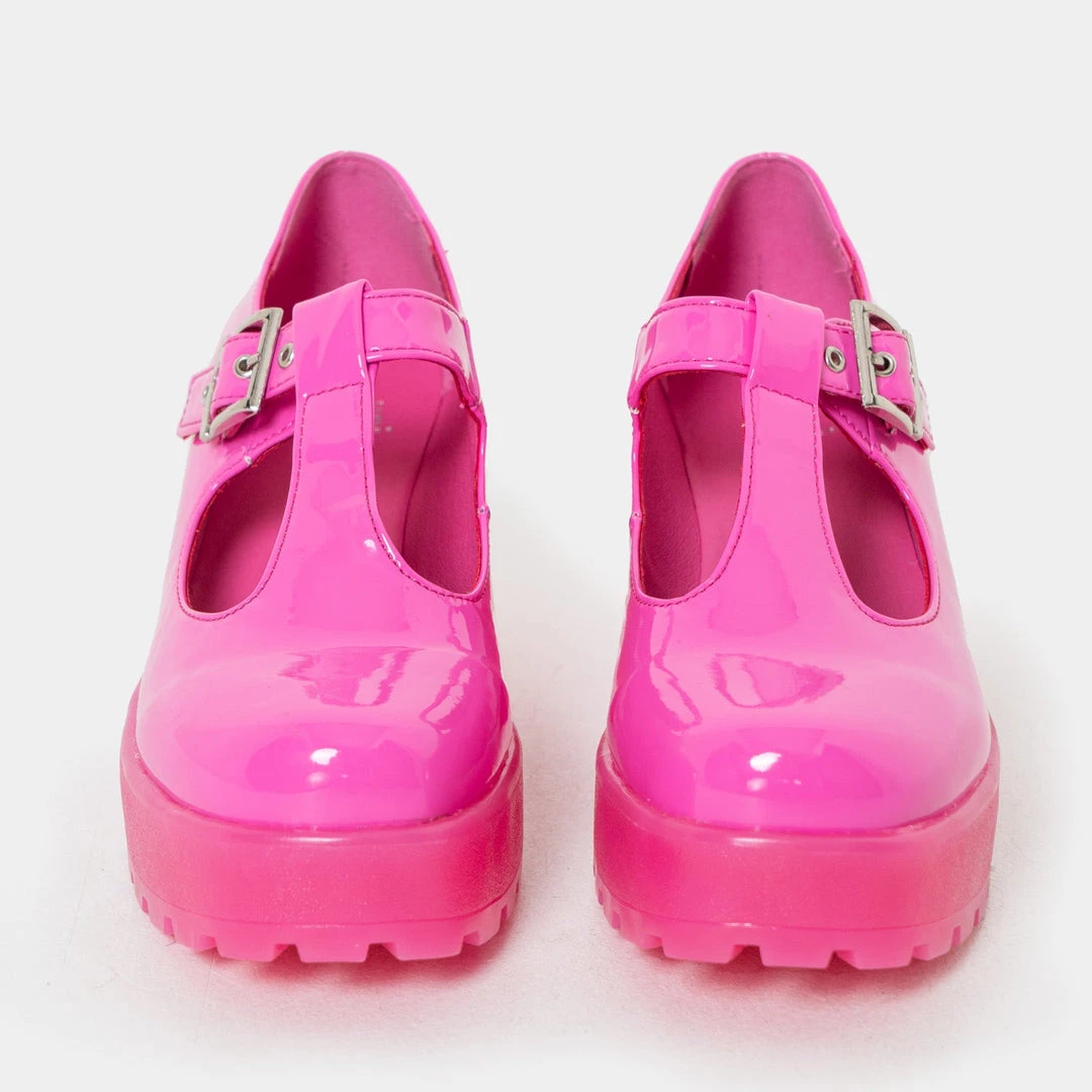 Welcome to the Candy Shop, wanna try what we got? These pink Mary Janes are a classic, perfect for the Candy Collection. The platform Mary Janes are constructed with vegan leather, have chunky heels and adjustable buckle strap closures.