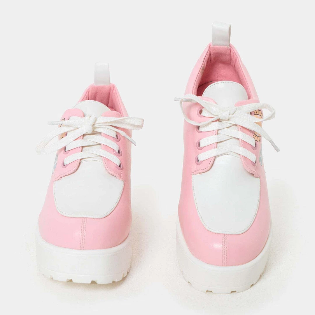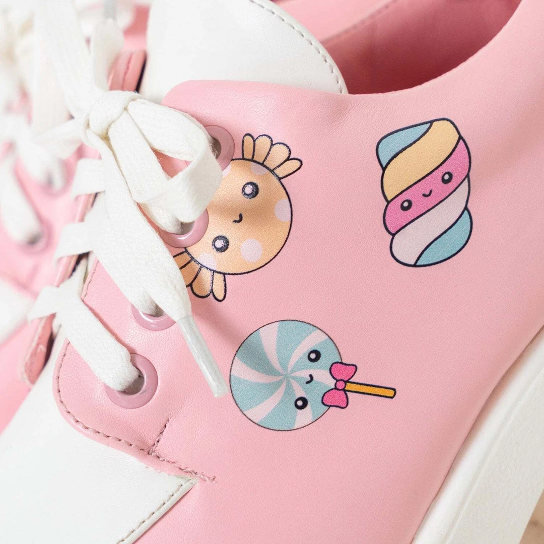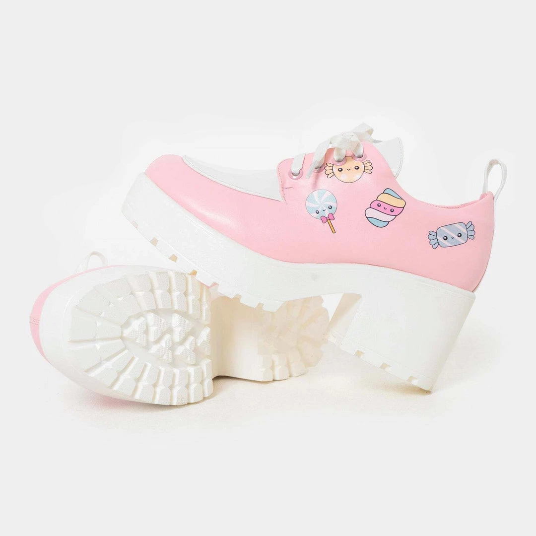 Hey sweetie! We can’t wait to see you at after prom in these kawaii chunky pastel shoes. These pink vegan shoes feature a mini heel and chunky sole with sweet candy details and white laces. Guaranteed to make you the most sickening at the party, these Koi shoes are baby pink with white details to see you from day to night.
