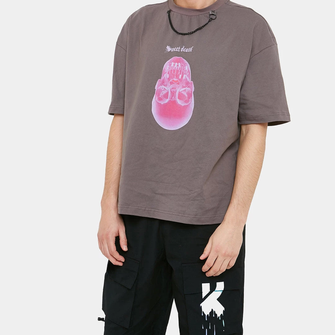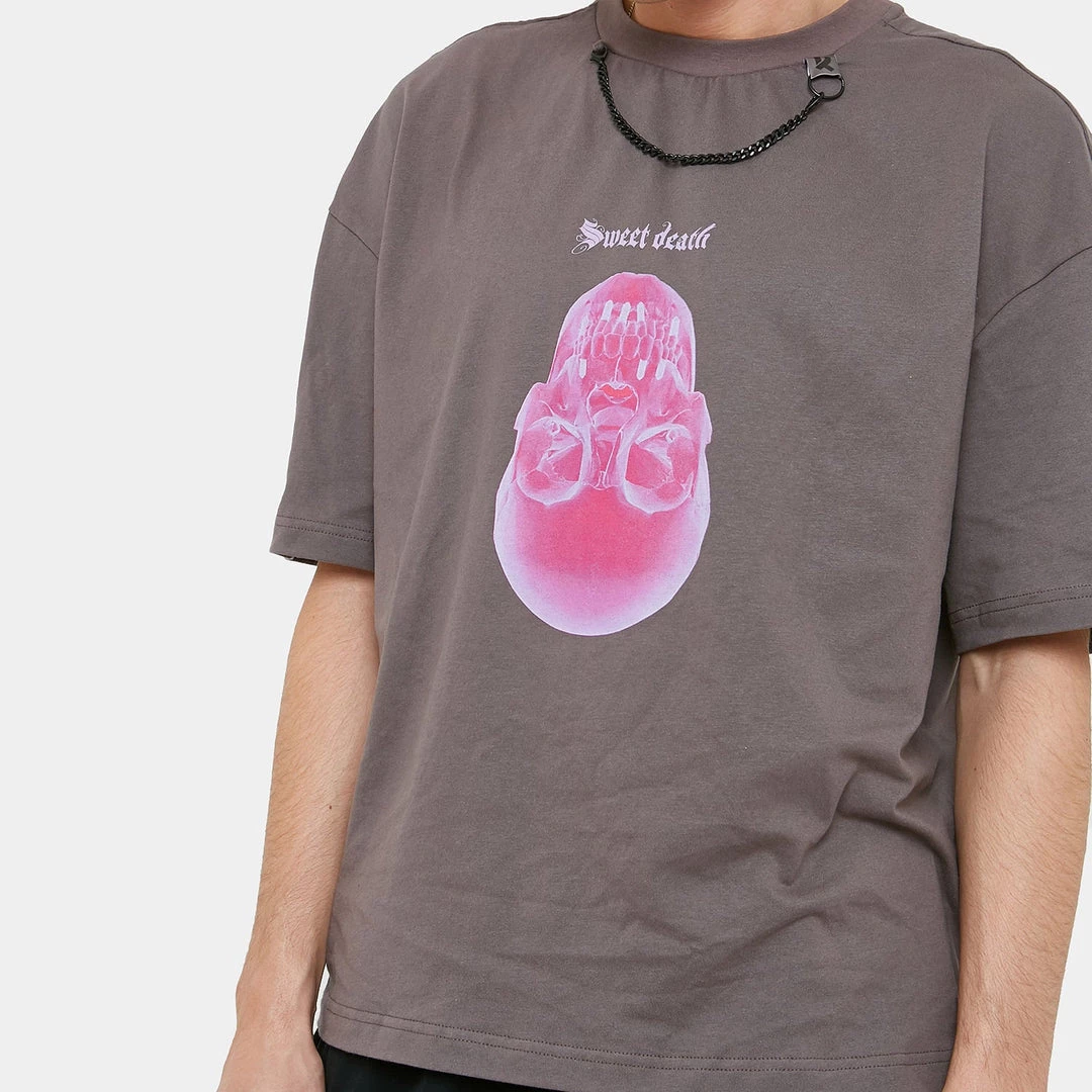 Lured by the sweet scent, the sweetest blossom die. Featuring Sweet Death graphic t-shirt with a skull graphic print and an attached chain. Really the best way to go out!ย