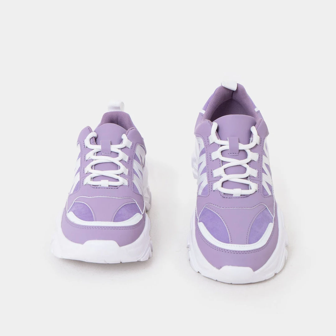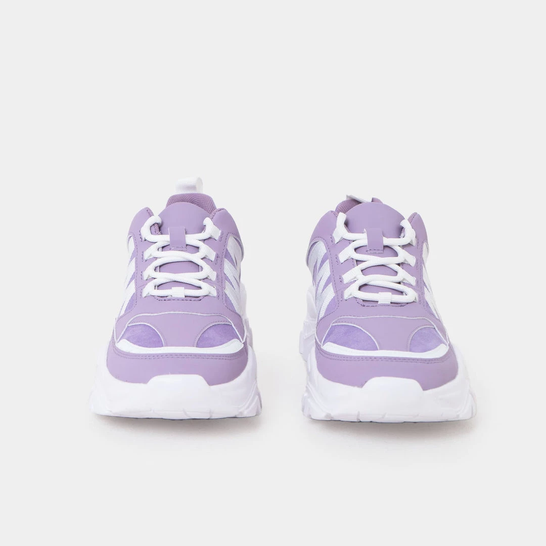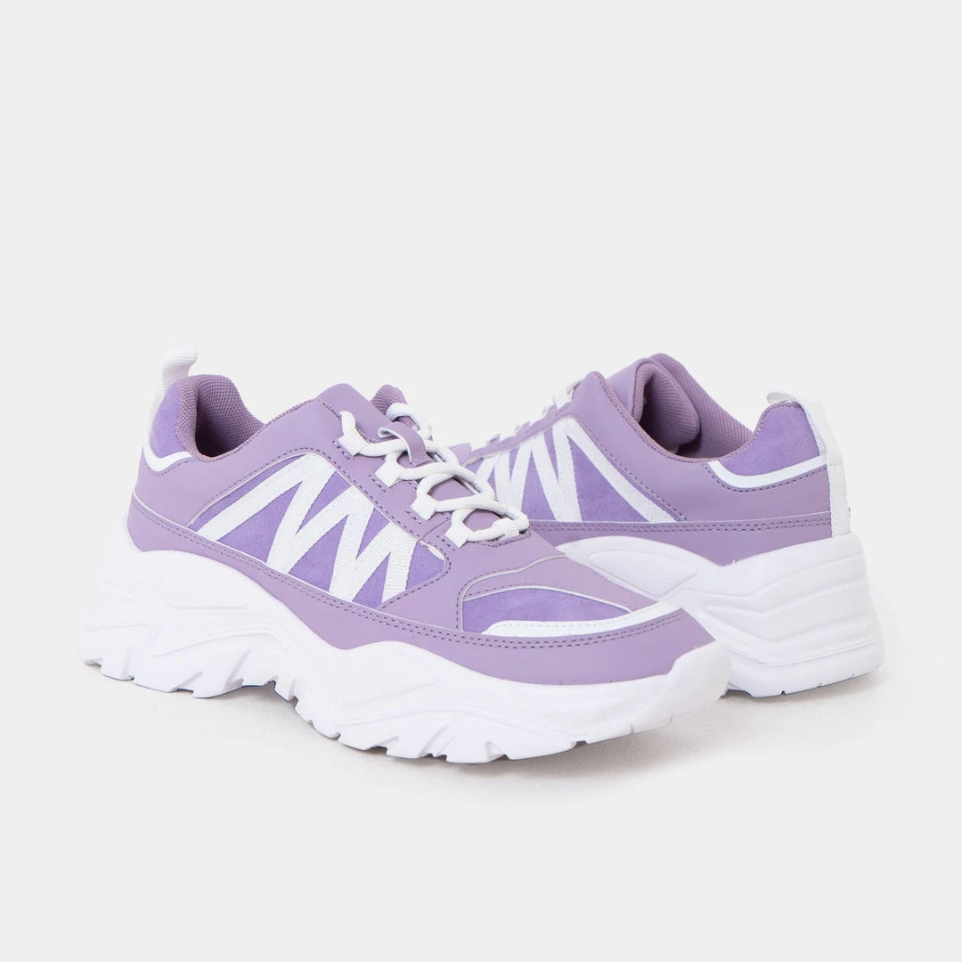 “Let’s get sporty! Koi Footwear has got you sorted for festival season with some cute chunky trainers to last you from day to night. Whether you’re dancing the night away at a gig or taking a long walk in the sun, we got you covered this summer. These lace-up sneakers are a cool toned lilac vegan leather with a chunky white sole and other striking white details for a cool graphic effect.”