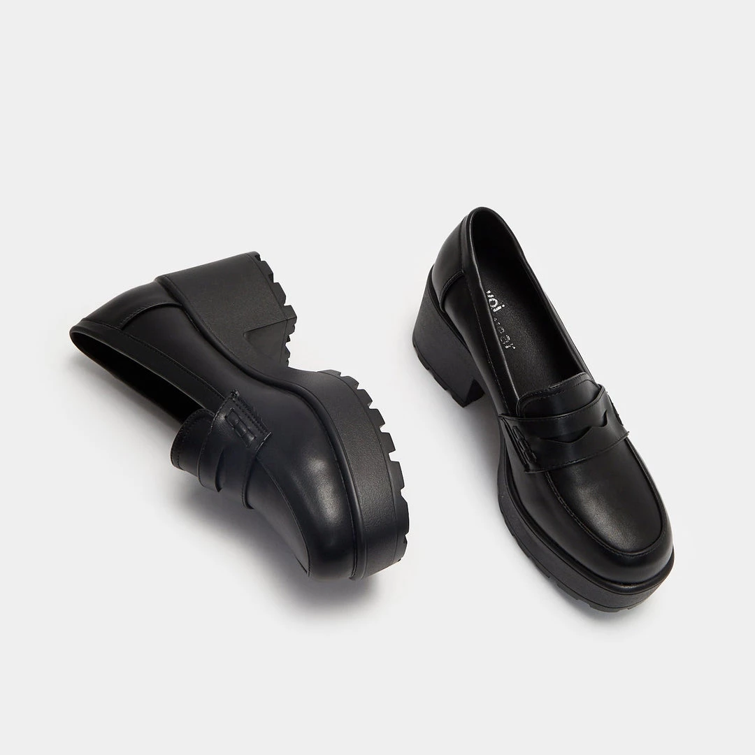 Classic black shoes turned cool, in true Koi Footwear style. These black vegan leather chunky heels are an absolute wardrobe staple – get ready to wear these to the office and straight to the party! The versatility is insane…goth meets librarian meets back to school. Everyone takes a different vibe from these, but one thing that’s certain is that you’ll be unstoppable with these loafer-style platforms.