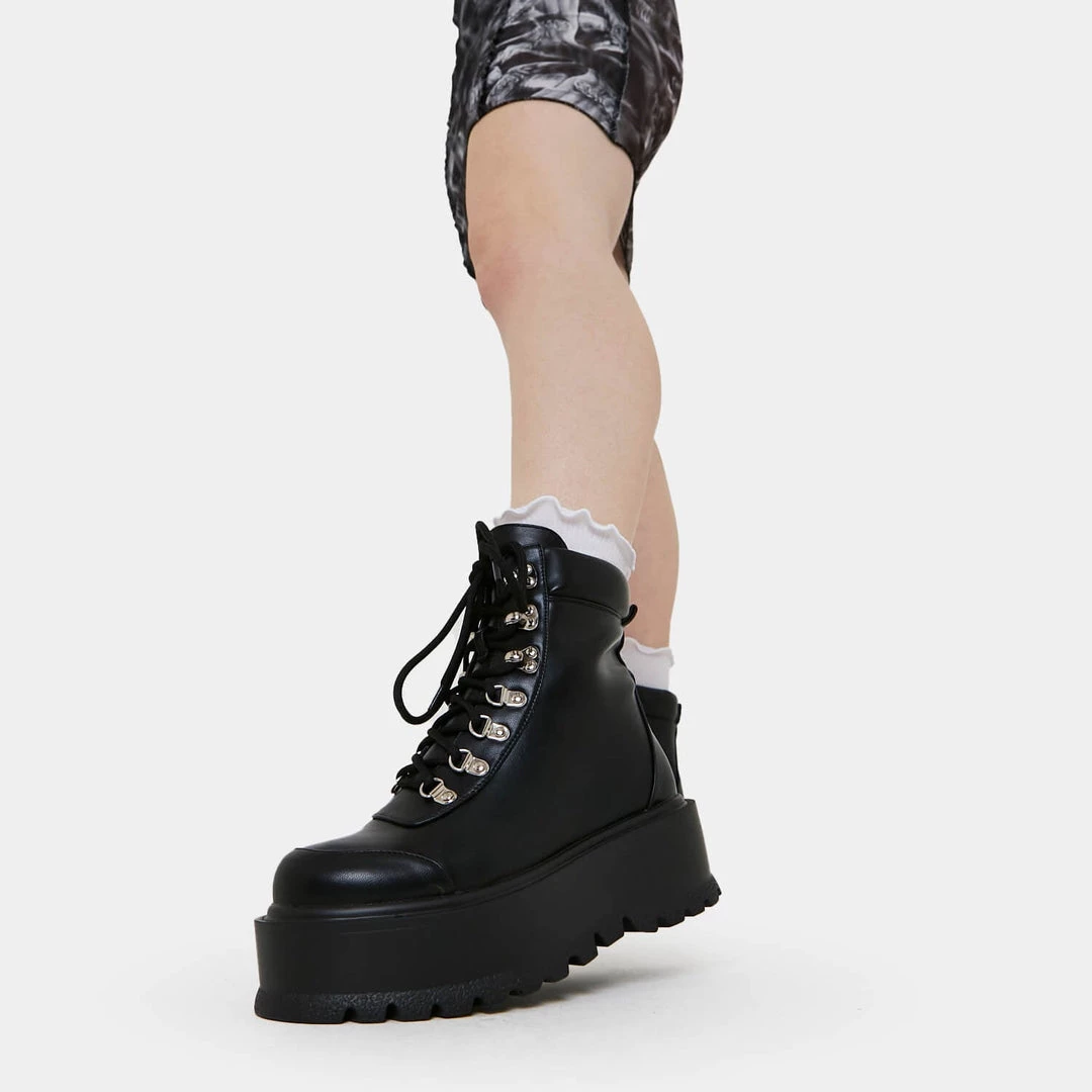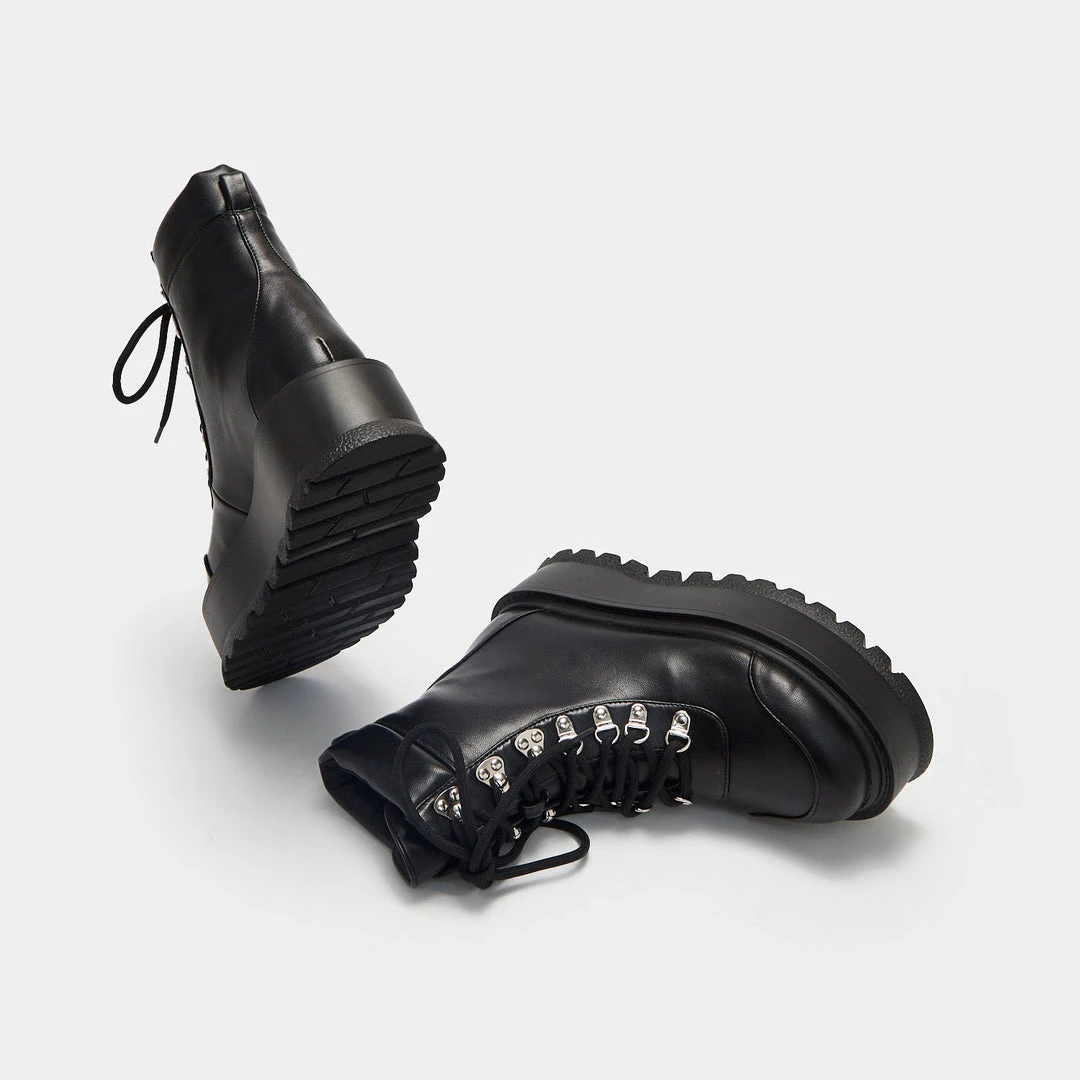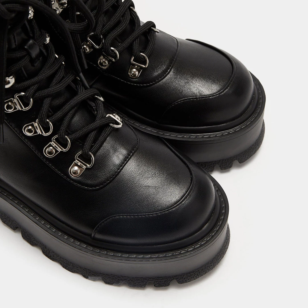 Our Hydra boots are finally here in an all black version, we used all the elements available to us to achieve the contract, using stitching, sole lines, and laces, the matrix platform offers the perfect chunky base, but without any compromise on comfort!Â